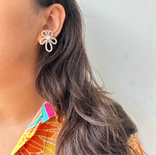 Minimalist Faux Pearl Lily Stud Earrings
