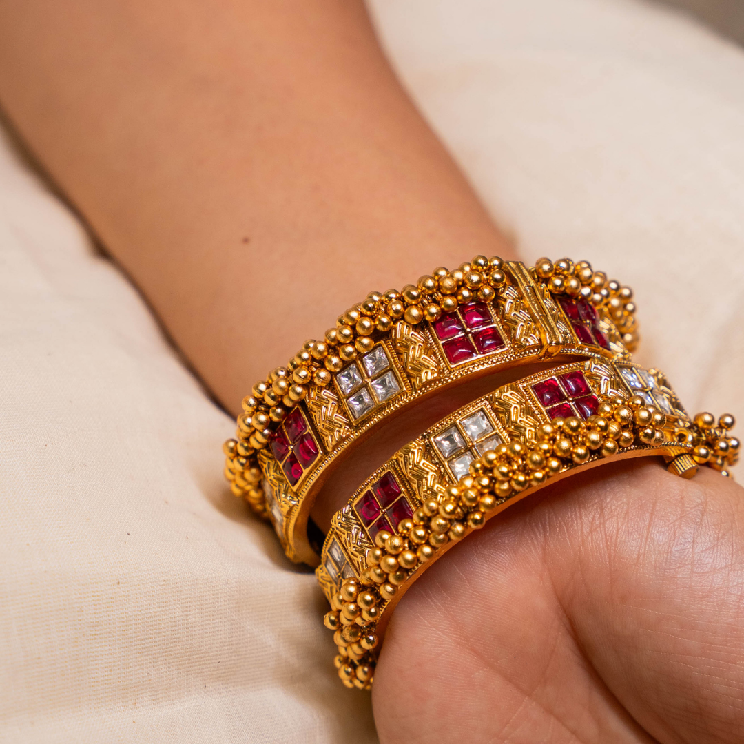 Celebrate the festive spirit with our Wamika Bangle Set, a masterpiece from the Tyohaar ki Tayyari collection. Designed as an Indo-Western statement accessory, these bangles perfectly blend traditional artistry with contemporary charm.
